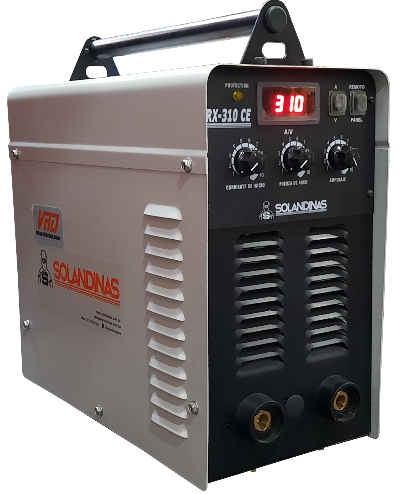 Soldadora monofásica inversora de corriente continua (DC), para soldar con electrodos revestidos (MMA). Posee la opción para activar el sistema VRD y amperímetro digital.