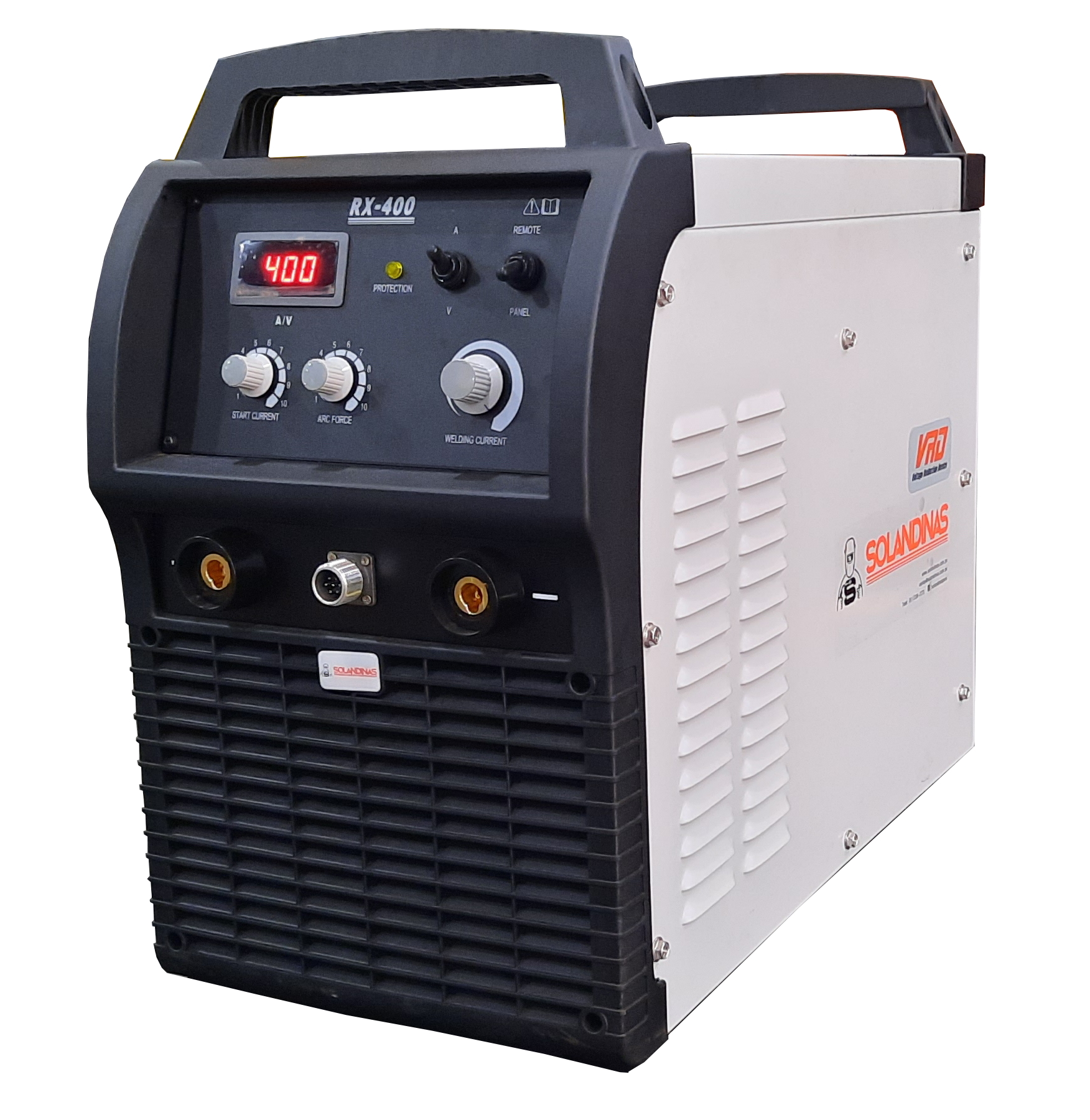 Soldadora trifásica inversora que puede trabajar en 220V/380V/440V, brinda corriente continua (DC) y un amperaje máximo de 400 amperios. La regulación de voltajes es automático (AUTO LINE). Su proceso principal es SMAW para soldar electrodos revestidos, especialmente los celulósicos, rutílicos, basicos y bajo hidrógeno, inoxidables y aluminio.